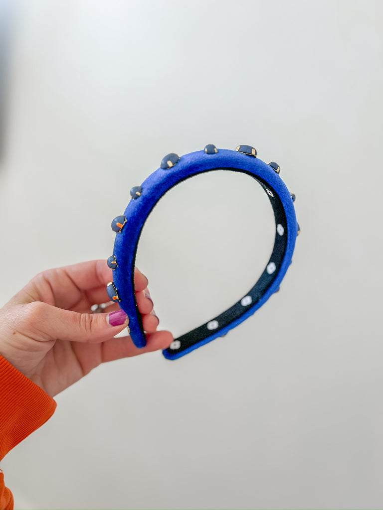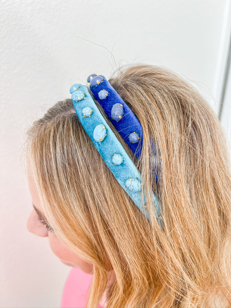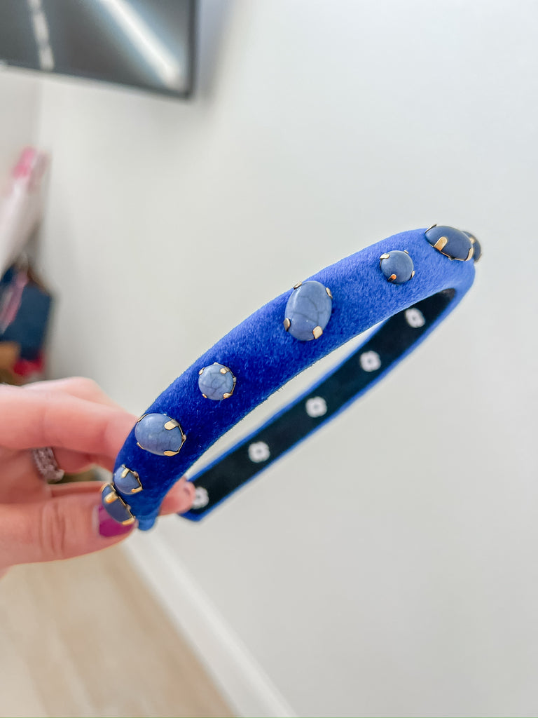 Navy Blue Velvet Ultra Slim Headband with Stones