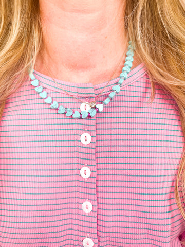 - Turquoise heart beads paired with delicate pink seed beads create a youthful, upbeat focal point, symbolizing warmth and affection.