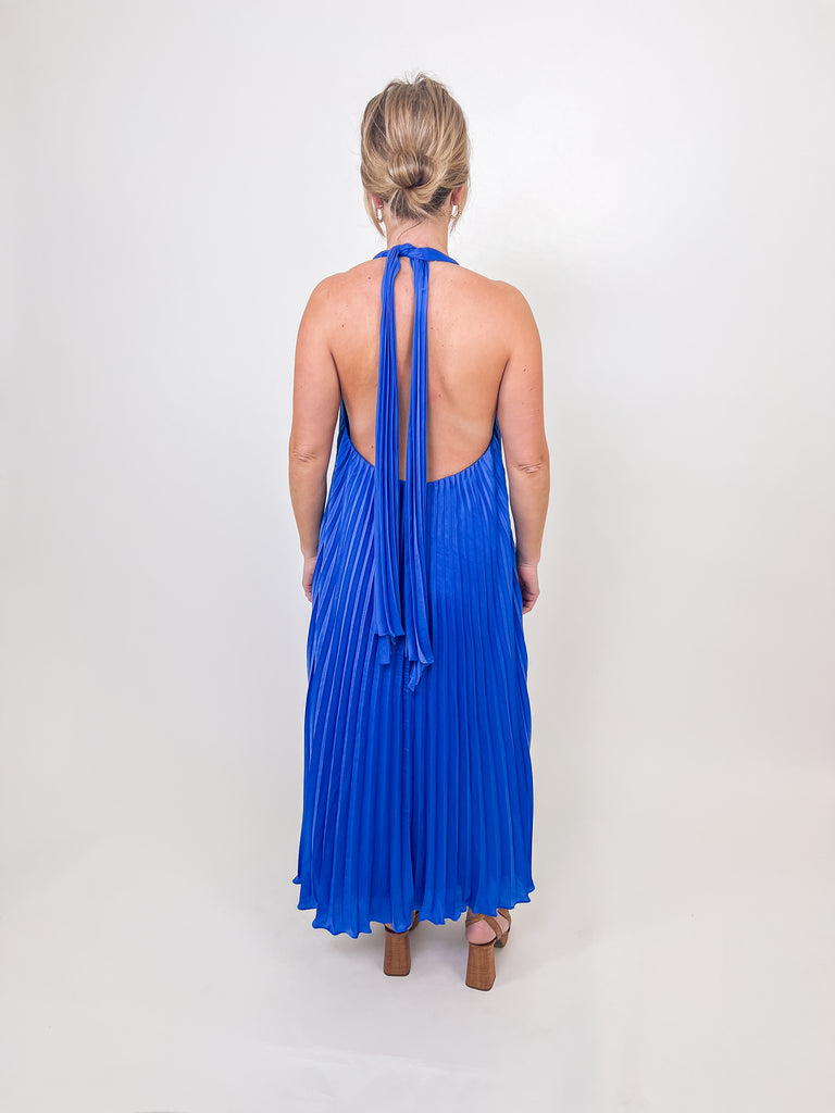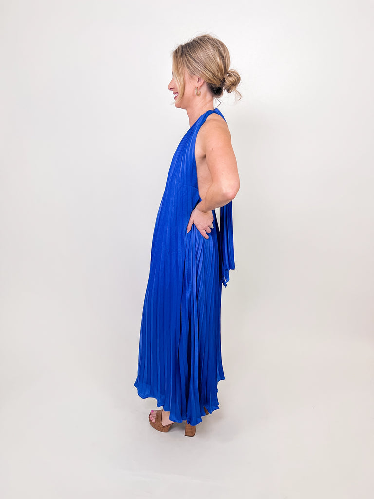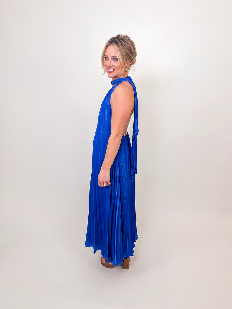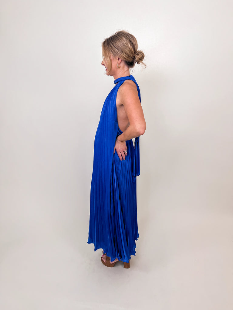 Royal Blue Pleated Halter Maxi Dress